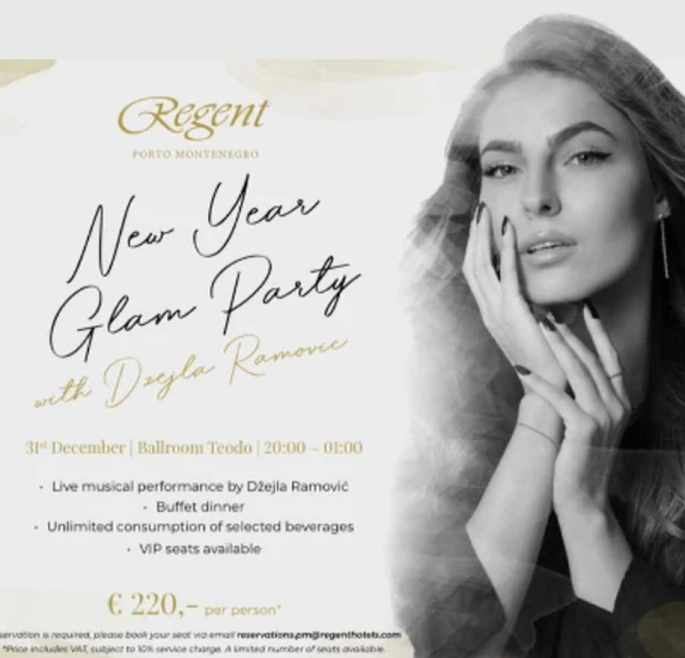 Bosanskohercegovačka pjevačica Džejla Ramović za Novu godinu nastupa u Crnoj Gori u hotelu Regent u Porto Montenegru.