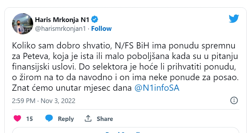 Nogometni savez Bosne i Hercegovine spremio je novu ponudu za produžetak saradnje sa bugarskim stručnjakom Ivaylo Petevom, prenosi N1.