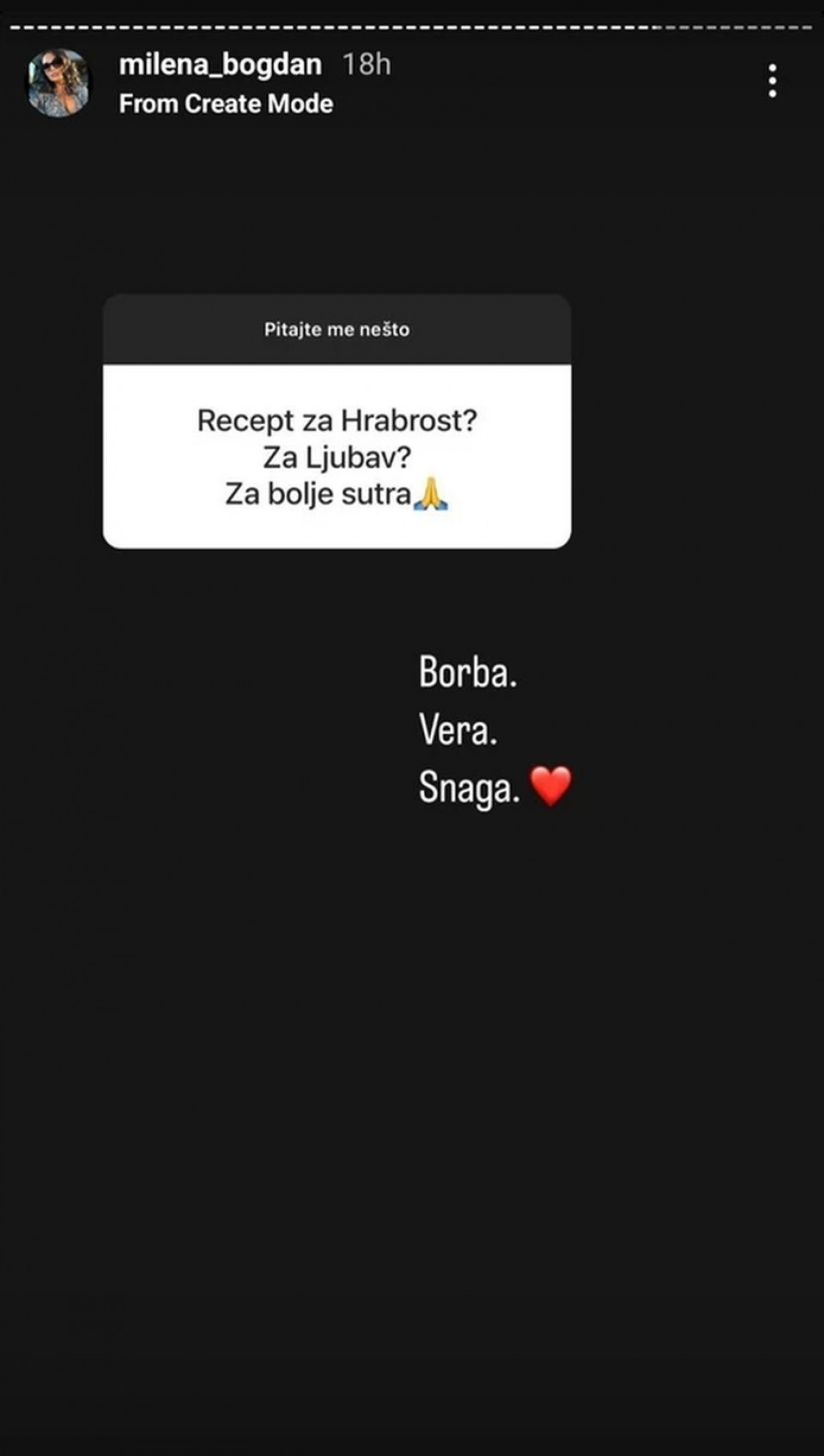 Iako ima veliku pažnju javnosti, Milena se ne libi da ponovo pred očima mnogih govori o svojim emocijama, pa je tako je i ovoga puta dala mogućnost pratiocima na Instagramu da joj postavljaju pitanja na koja će ona odgovarati.