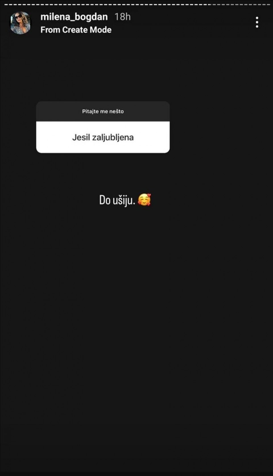 Milena je baš ovo odabrala da istakne na svom storiju, a njen odgovor glasio je: “Do ušiju”.