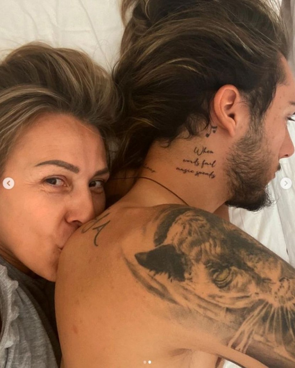Recimo, na jednoj od fotografija Nemanja Gudelj leži go u krevetu, a rođena majka ga je obrglila od pozadi i ljubi ga u rame.