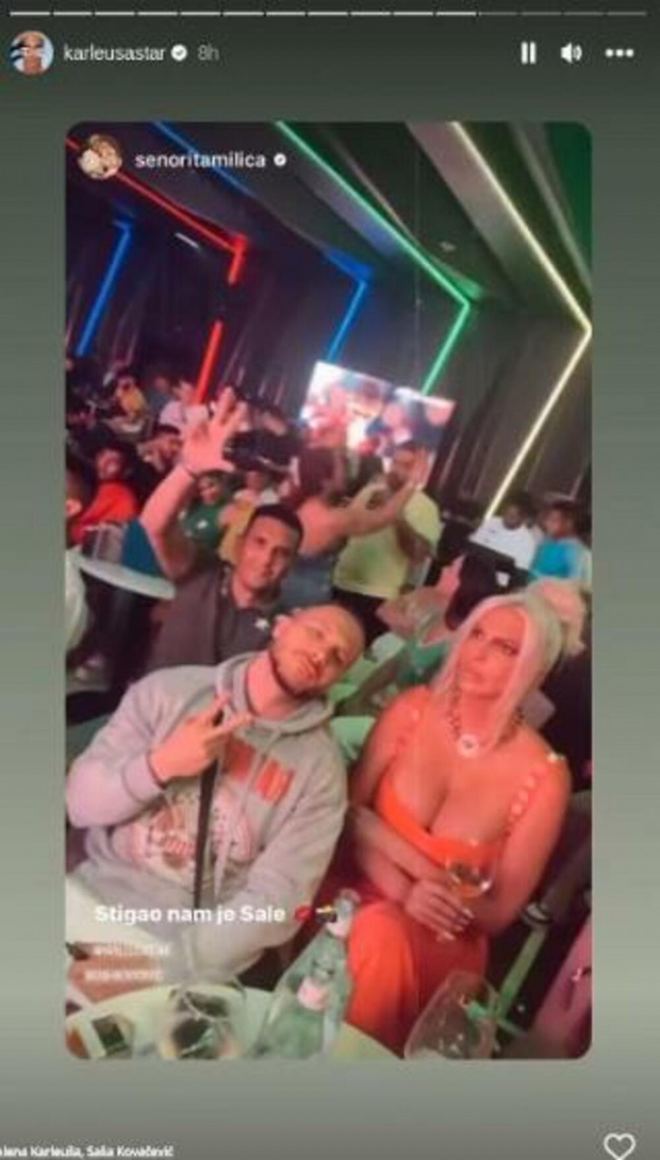 “Kakva noć u Dubaiju! Ja jesam životinja i jako sam energična ali Milica Pavlović je energetska zvijer! Izvinjavamo se dragom Saši Kovačeviću koji je ovo džentlmenski izdržao. TRI LAVA!”, napisala je ona na Instagramu.