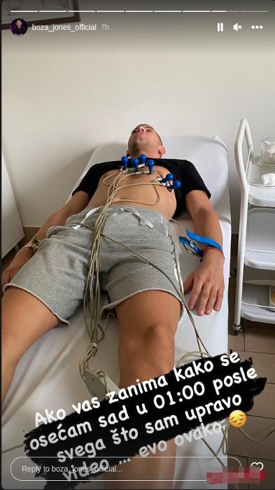 – Ako vas zanima kako se osećam sada u 01:00 posle svega što sam upravo video…Evo ovako – napisao je Boža, a na slici se vidi da je zadrugar prikačen na aparat kojim se utvrđuje aktivnost srca (EKG).