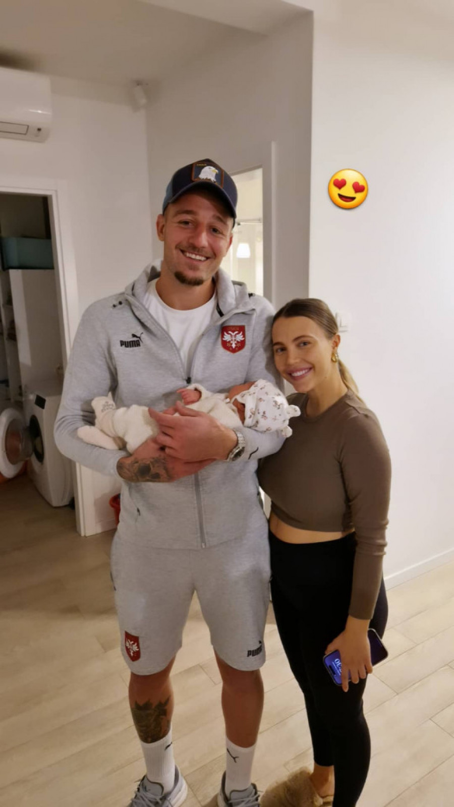 Konačno, Sergej je danas stigao iz Dohe i brže bolje pohitao kući gde ga je čekao novi član porodice. Fotografiju dirljivog susreta na Instagramu je podelio ponosni stric Vanja Milinković Savić.