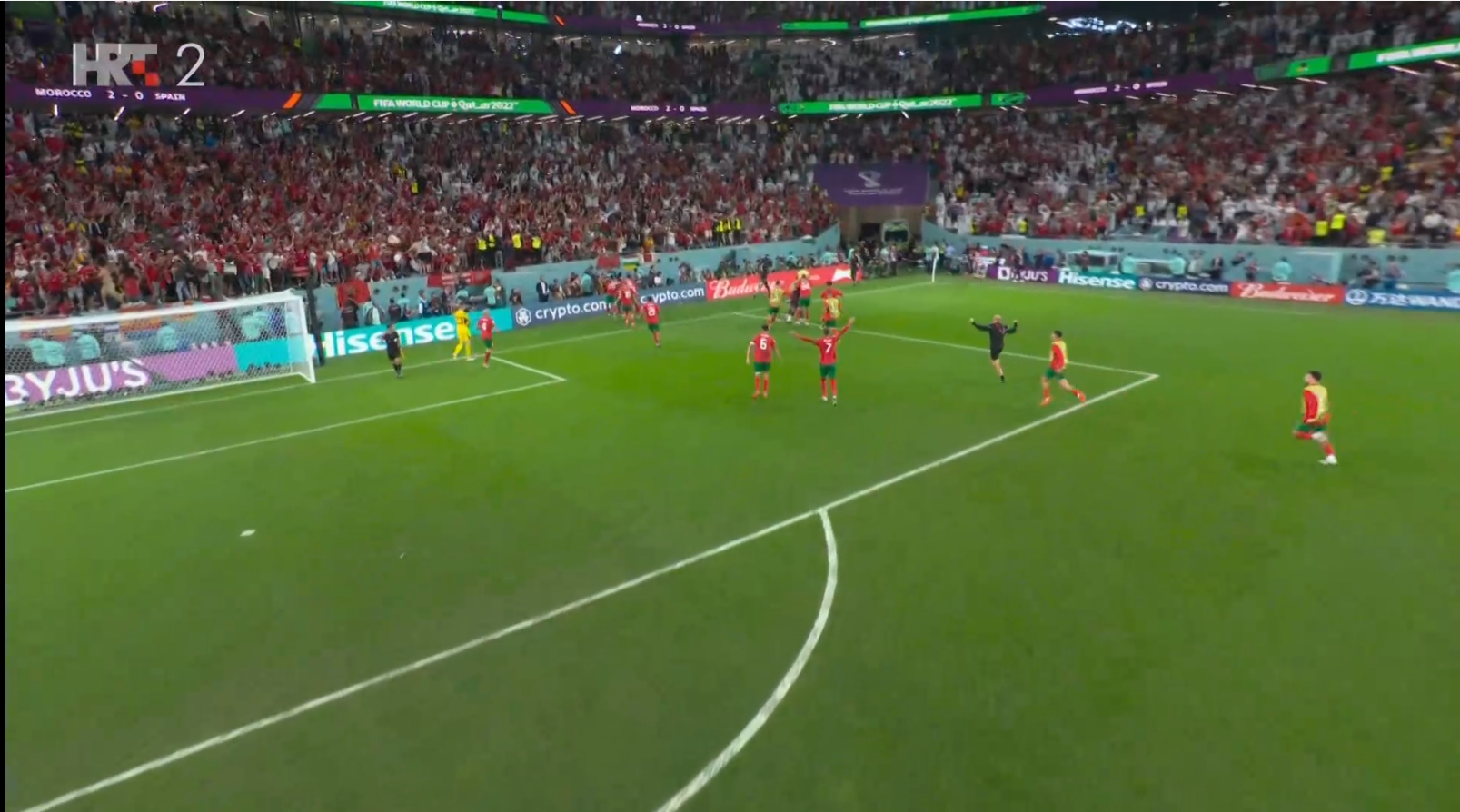 Nakon što nije bilo pogodaka ni u produžecima, pristupilo se izvođenju penala. U penal seriji bolja je bila selekcija Maroka. Fudbaleri Maroka bili su sigurni izvođači penala i kući su poslali Španiju! Golman Maroka Bono odbranio je dva penala Špancima!