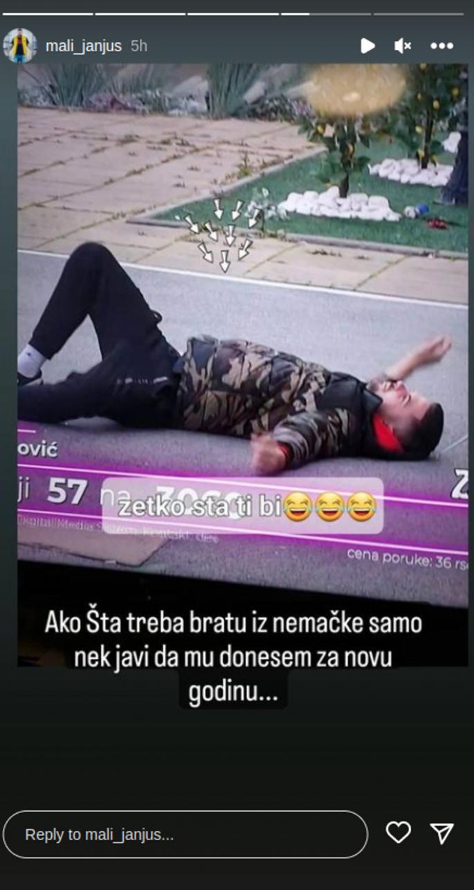 On je na Instagram storiju objavio fotografiju Bilala Brajlovića, novog dečka njegove bivše devojke Maje Marinković, kako leži na podu i poručio mu: