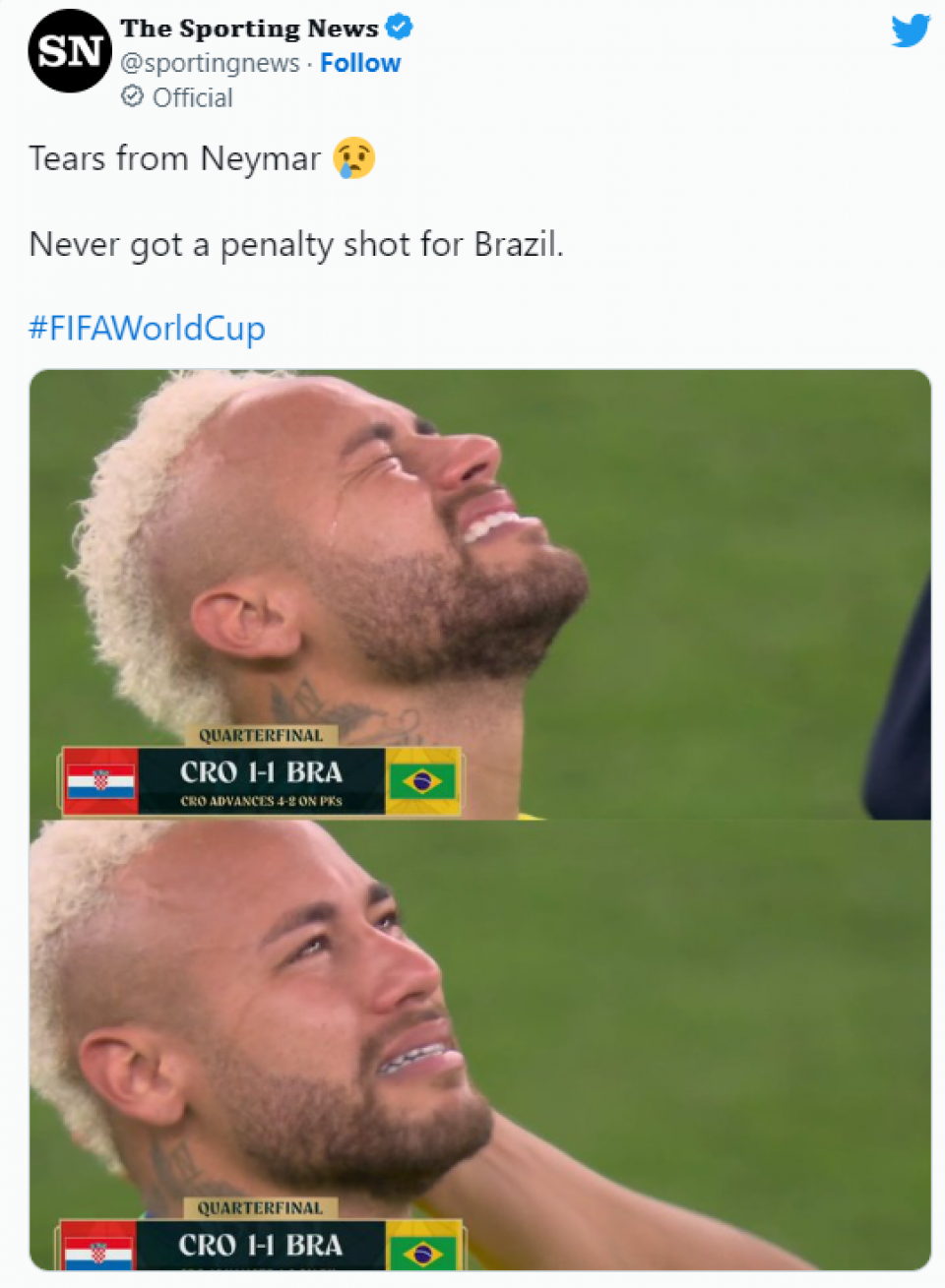 Nakon posljednje odbrane Livakovića, Brazilci su pali na travnjak i neutješno plakali. Neymar je plakao na sredini terena, suze nije ni pokušao skriti.b