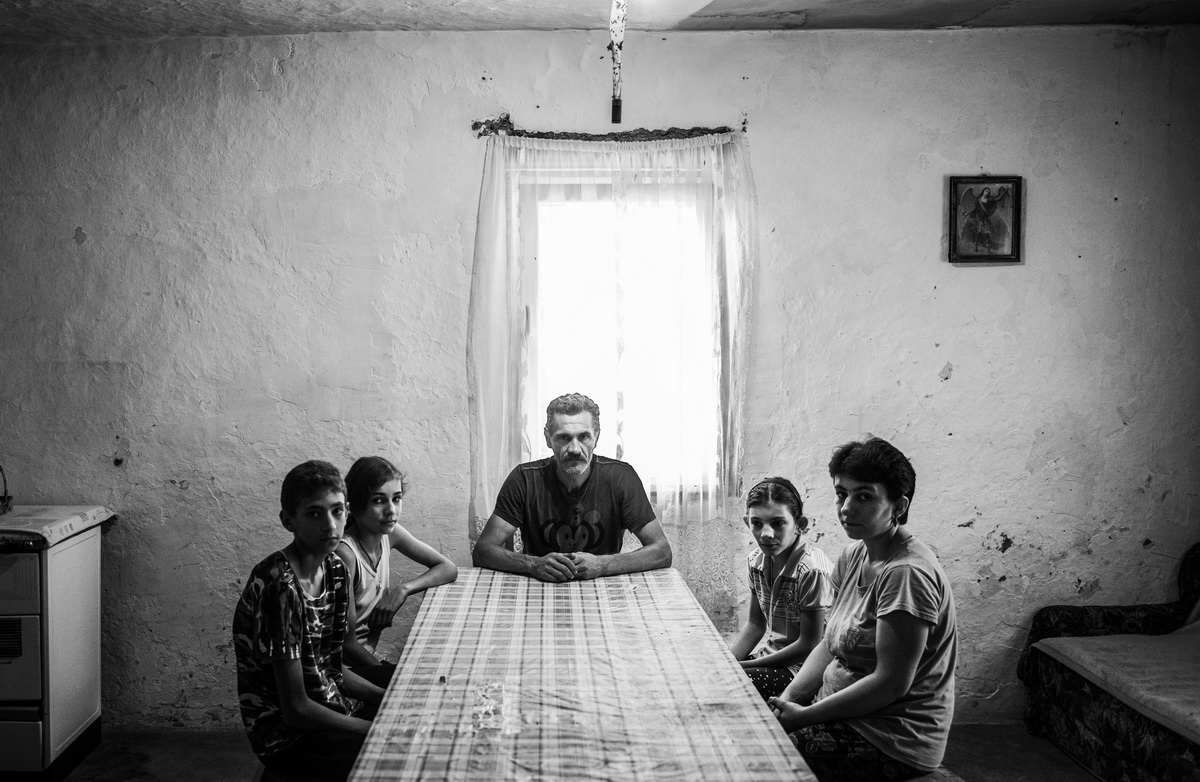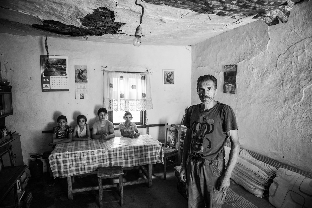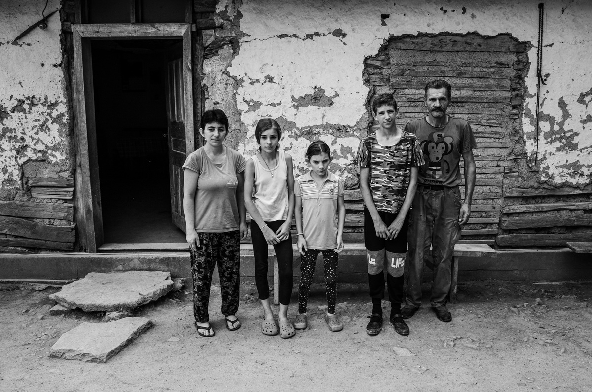 Pored Lutke stidljivo nam prilaze Dušan (13) i Aleksandra (11) i pokazuju nam da uđemo u kuću. Dugačka pravougaona soba sa zemljanim podom i pohabanim namještajem je i kuhinja i dnevni boravak. Tavanica puna zakrpljenih rupa, koja izgleda kao da će svakog trenutka popustiti, izaziva nemir i strepnju oko toga šta se može dogoditi u bliskoj budućnosti.