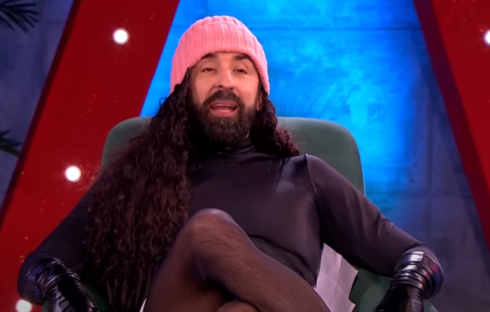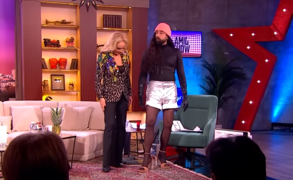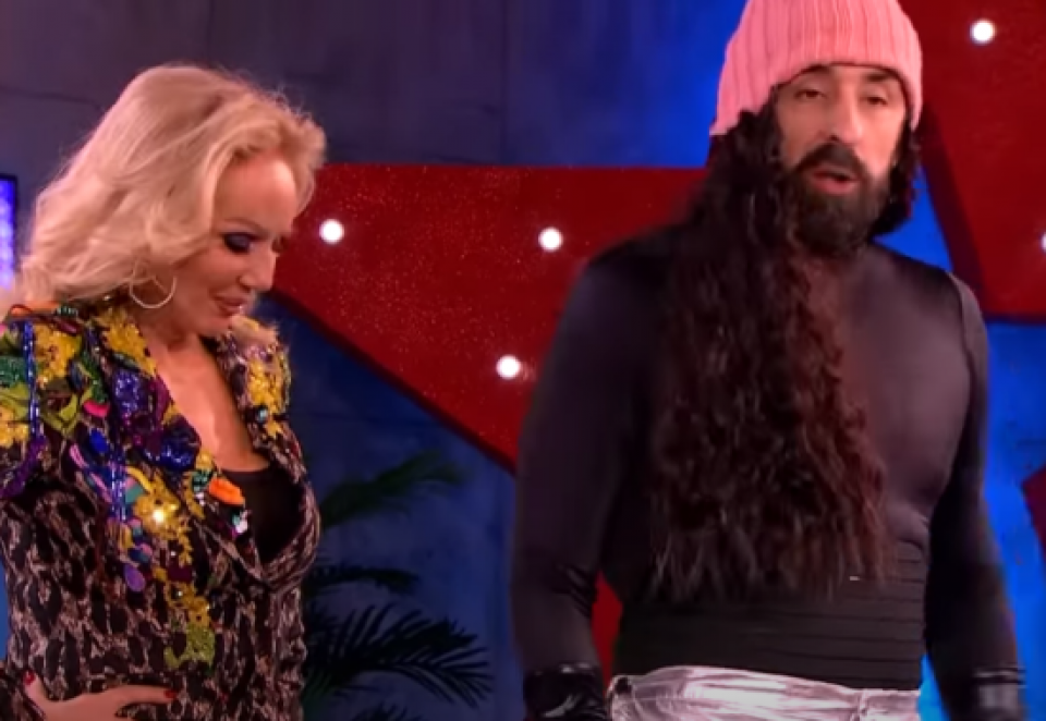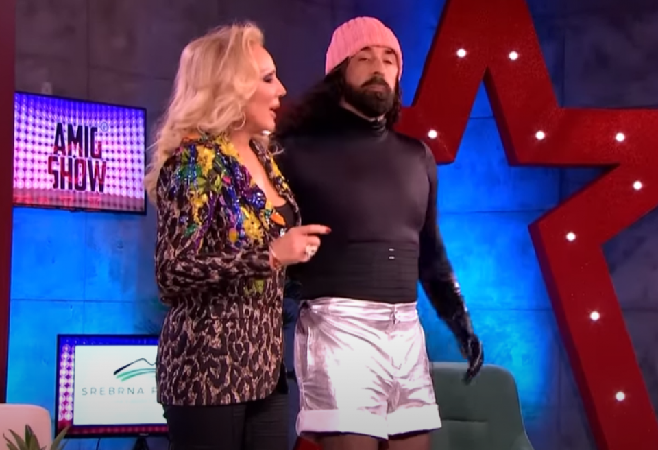 Voditelj Ognjen Amidžić morao je da isproba čarape Lepe Brene, pa se tako maskirao u pjevačicu iz budućnosti.