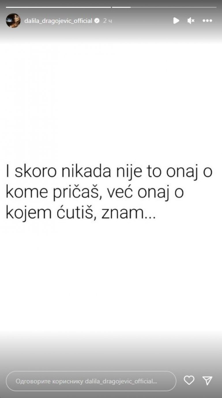 Naime, Dalila je poslednjom objavom nagovestila da možda postoji neko “o kome ne priča”, a svi su odmah pomislili da je u pitanju njen novi emotivni partner kojeg iz nekog razloga skriva od očiju javnosti!