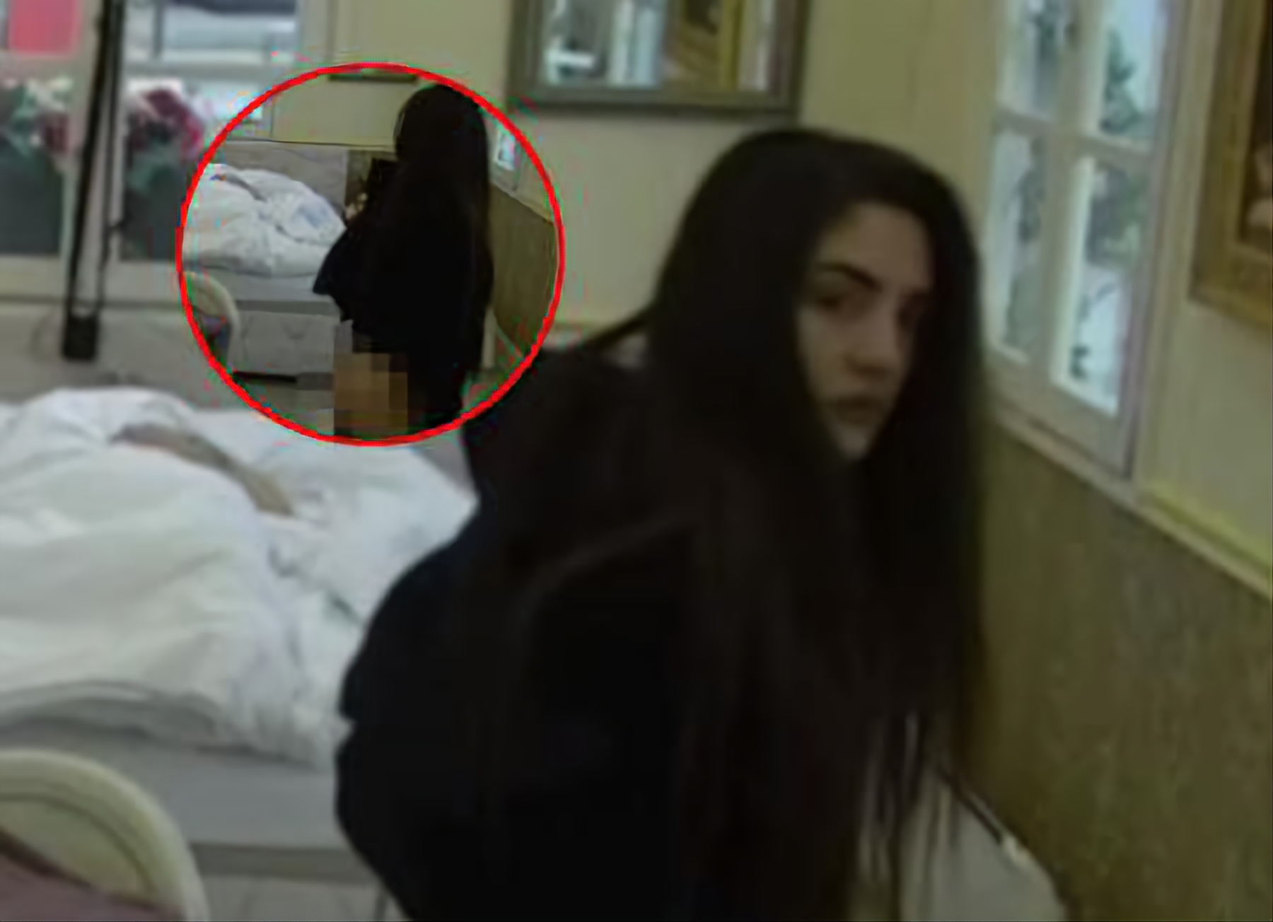 Naime, dok je Slavnić bio tu pored u prostoriji i spavao, ona je pogledala u kameru i kada je videla da je snimaju, odjednom je sk.nula donji deo trenerke i pokazala zad.icu u ta.gama.