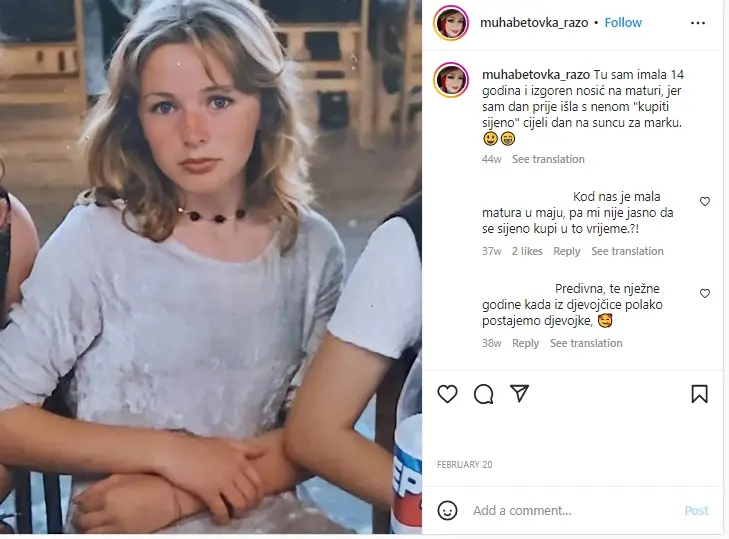 Razo je inače jako aktivna na društvenim mrežama, a na Instagramu, gdje je prati preko 54 hiljade osoba, a jedne prilike pokazala je kako je izgledala sa 14 godina.