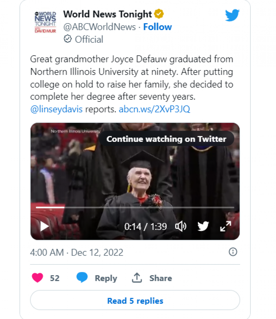 Baka iz Sjedinjenih Američkih Država u 90-toj godini života konačno je uzela diplomu u svoje ruke, čak 71 godinu nakon što je upisala prvu godinu fakulteta.