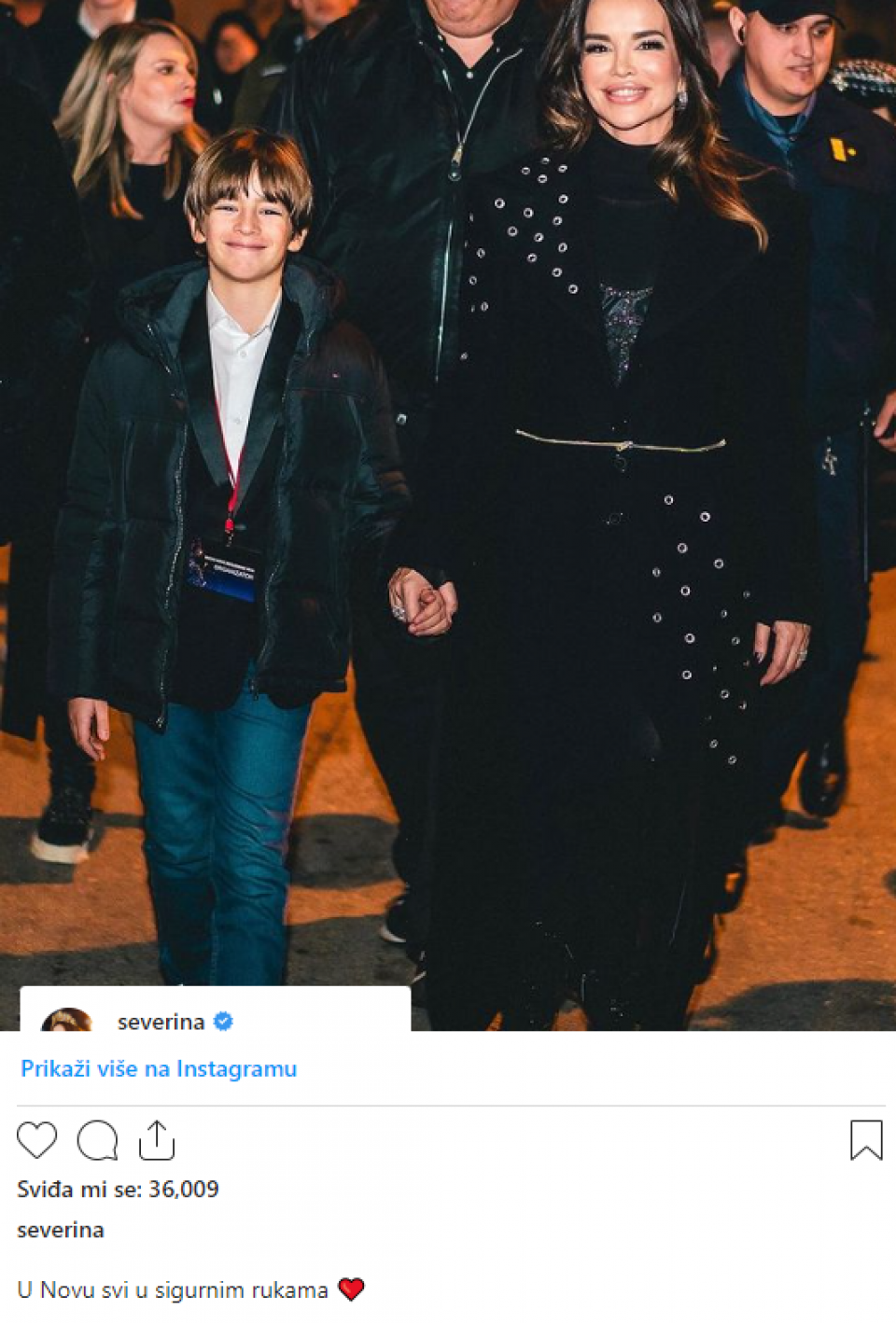 Na društvenim mrežama, Severina se pohvalila videom i fotografijom sa sinom Aleksandrom. Naime, na nastup je stigla sa sinom, a neposredno pred izlazak na pozornicu, provela je vrijeme upravo sa njim.