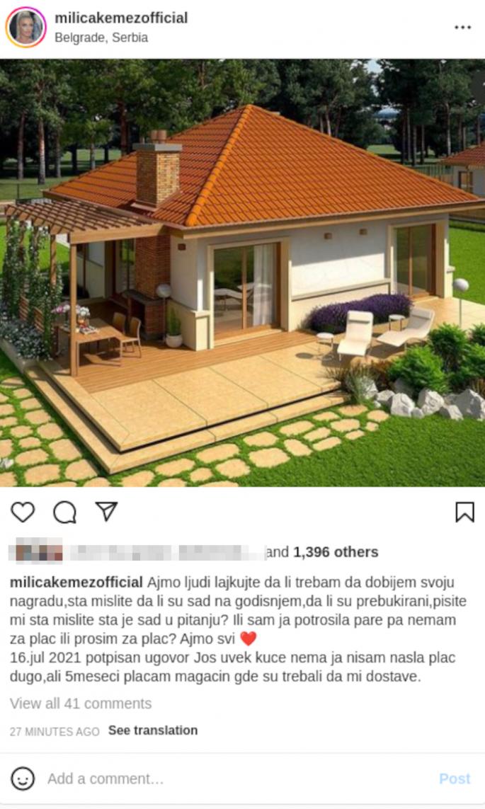 – Hajmo ljudi, lajkujte da li treba da dobijem svoju nagradu, šta mislite da li su sad na godišnjem, da li su prebukirani, pišite mi šta mislite, šta je sad u pitanju? Ili sam ja potrošila pare pa nemam za plac ili prosim za plac? Ajmo svi – napisala je Kemezova pa dodala: