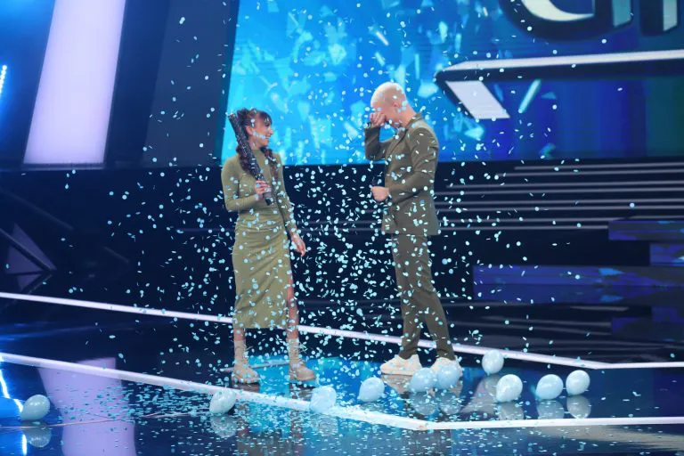 Na pitanje da li više priželjkuju dečaka ili devojčicu, oboje su odgovorili kako im je svejedno pošto već imaju i sina i ćerku, a kada je Kostov probušio veliki balon izletelo je mnoštvo malih plavih balona koji su značili da stiže još jedan dečak u njihovu porodicu.