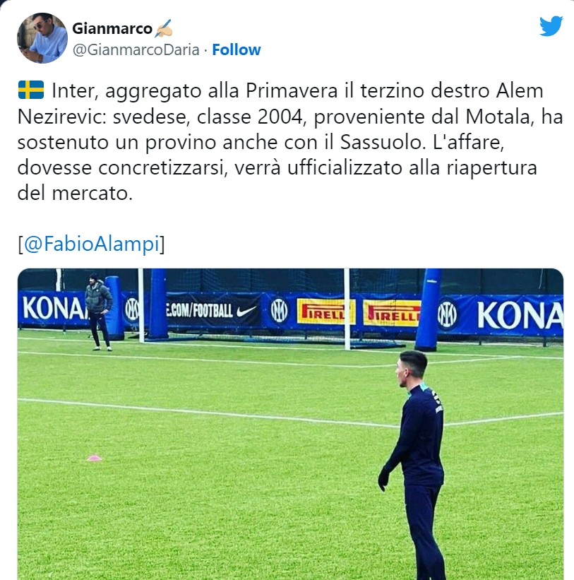 “Inter je odlučio potpisati mladog fudbalera jer vjeruje da 18-godišnjak ima karakteristike da se razvije u napadačkog beka na nivou Serije A. Nerazzurri su pratili njegove atletske sposobnosti i osjećaj za kretanje tokom njegovog probnog boravka u Primaveri. Odlučili su da je on vrijedna investicija za budućnost”, piše Gazzetta.