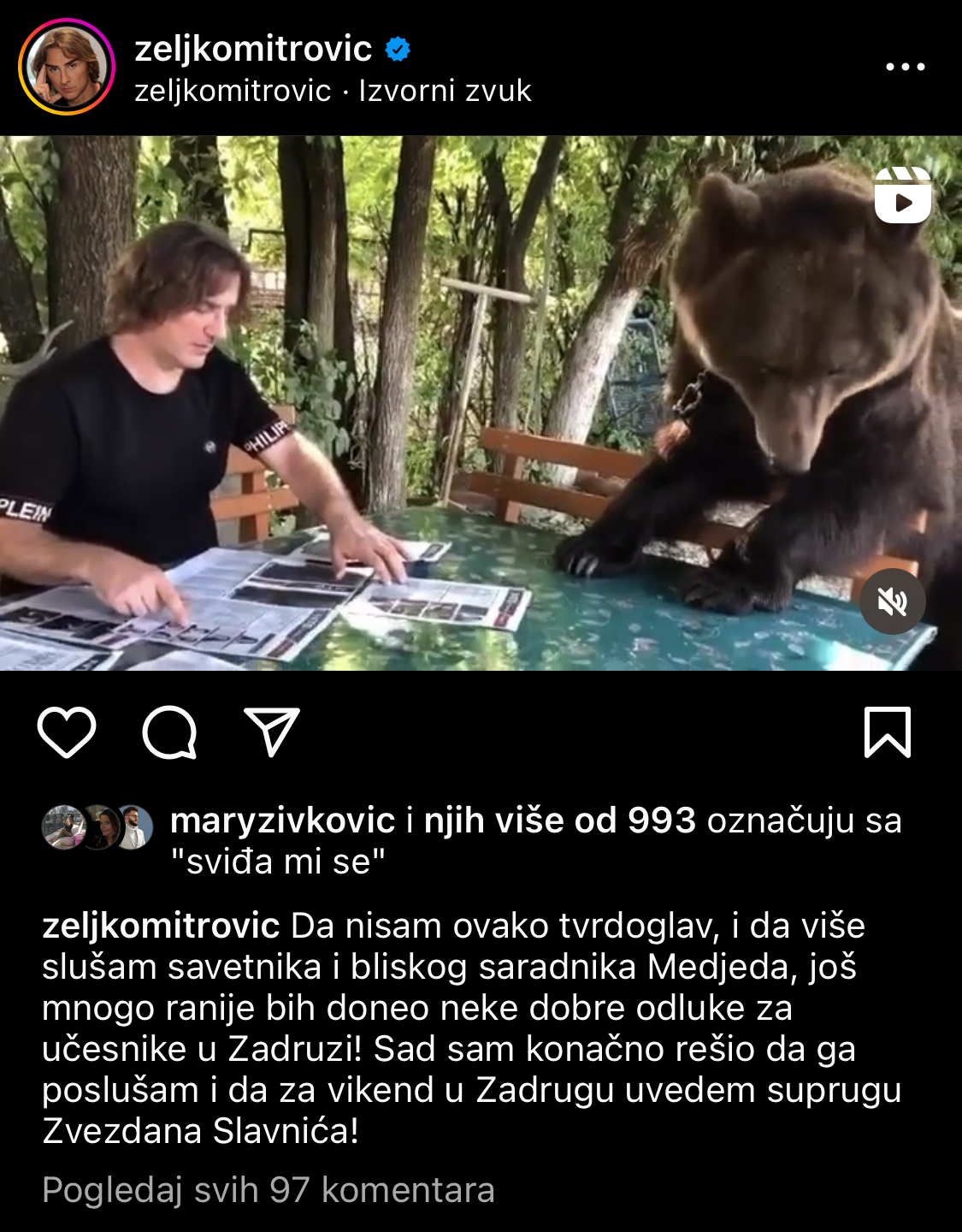 Željko Mitrović, generalni direktor i vlasnik Pink media group, novom objavom na Instagramu podigao je ogromnu prašinu u javnosti i oduševio brojne fanova rijalitija “Zadruga”!