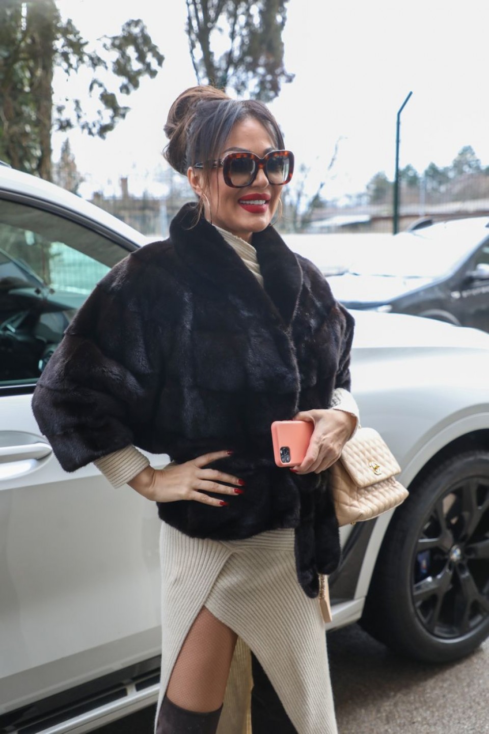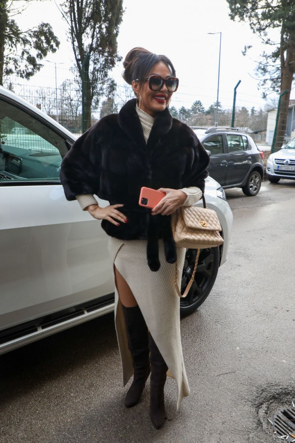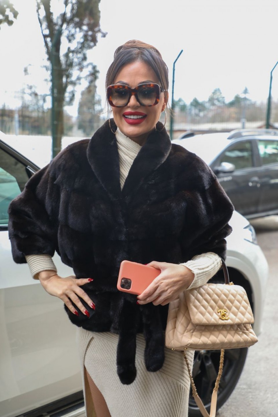 Naime, Ceca je za ovu priliku ponijela bež haljinu sa šlicem do kuka, dok ju je grijala bunda od nerca, koja košta 20.000 eura.