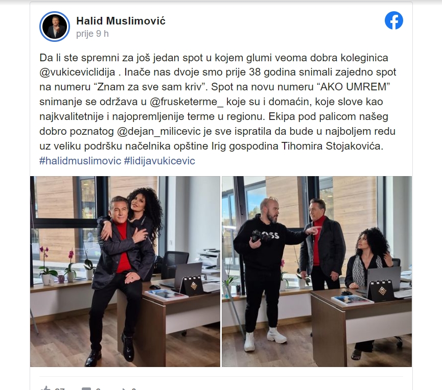 Pjevač je na svom profilu objavio nekoliko fotografija sa kolegicom Lidijom i otkrio detalje oko spota: