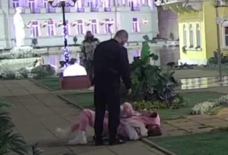 Anđela Đuričić nastavila je da pravi haos po velelepnom imanju, a u jednom trenutku je završila na podu i počela da se valjda, sve dok nije došao Zvezdan Slavnić koji ju je podigao i pokušao da smiri.