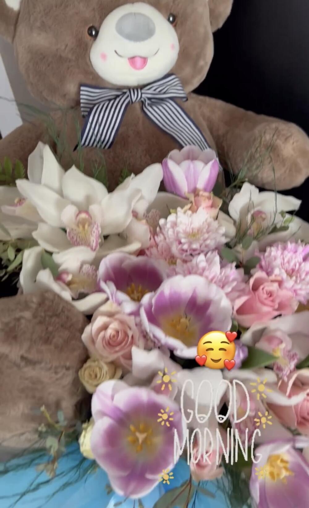 Ana je dočekala jutro i ugledala plišanog medu sa prelepim buketom cveća koji je snimila i okačila na svoj stori.