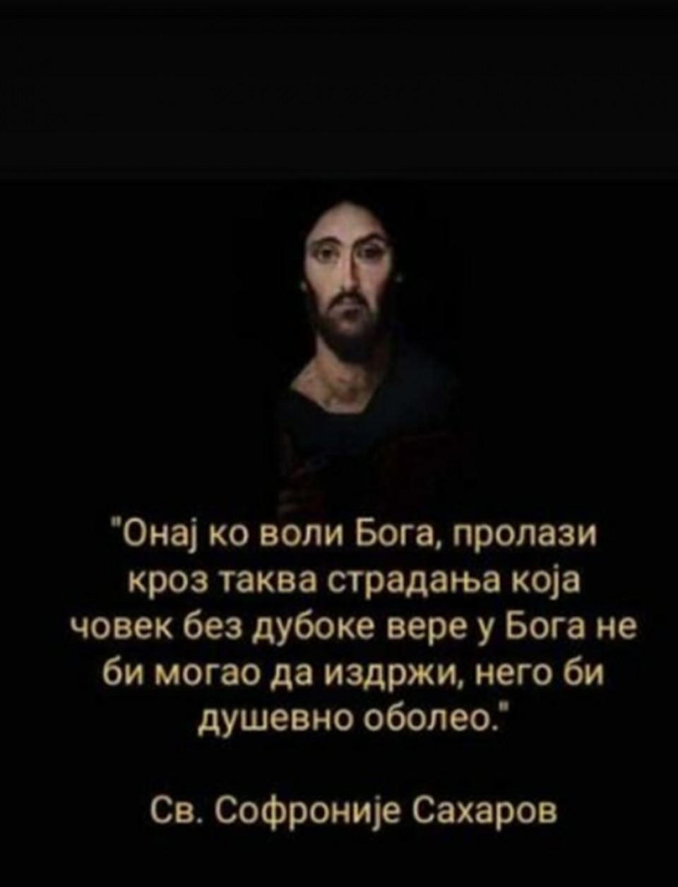 – Onaj ko voli Boga, prolazi kroz takva stradanja koja čovjek bez duboke vjere u Boga ne bi mogao da izdrži, nego bi duševno obolio. Sv. Sofronije Saharov.