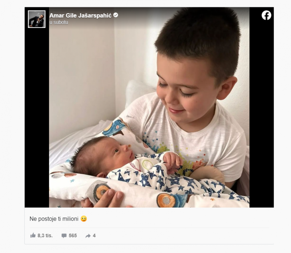 Pjevač Amar Gile Jašarspahić nedavno je dobio drugog sina kojem su on i partnerica dali ime Zlatan.