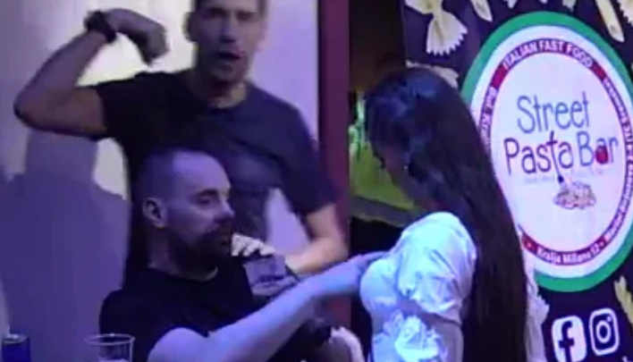 Anđela je ponosno pokazala svoje poprsje, dok je njihala kukovima, a Slavnić je iskoristio svaki trenutak da ih pažljivo opipa.