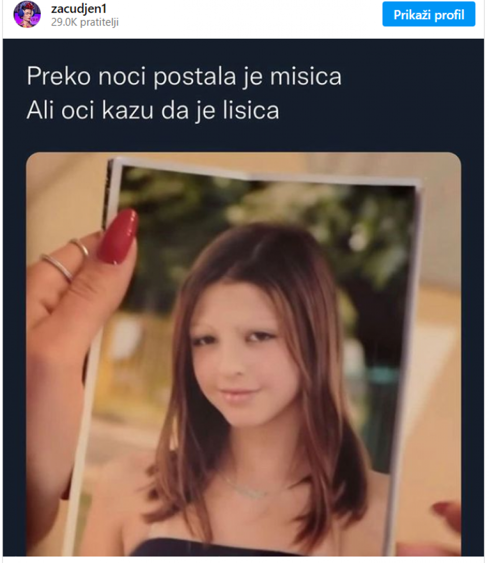 Na Instagramu je isplivala njena fotografija iz prošlosti, gdje je mala Maja bez ikakvih korekcija pozirala ispred objektiva pretpostavlja se za školsko slikanje.