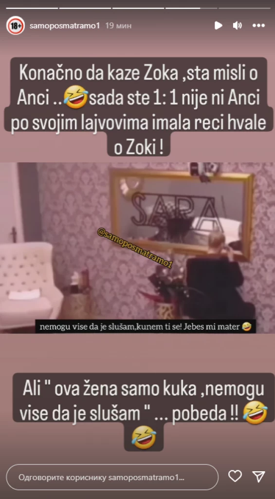 Mnogi njihovi neprijatelji smatraju da će do kraja “Zadruge 6” Zorica zabiti nož u leđa, na šta ju je više zadrugara upozoravalo. Do sada se desilo nekoliko situacija gde su njih dve bile na ivici ozbiljnog konflikta, ali su uvek rešavale probleme razgovorom. To možda neće biti slučaj ako Ana sazna šta joj je Zorica rekla iza leđa.