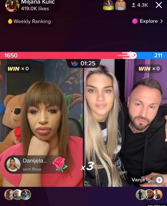 Naime, Miljana je odlučila da drži lajvove i mečeve na TikTok-u, gde njeni pratioci imaju mogućnost da joj šalju poklone, od kojih svaki ima određenu novčanu vrednost, koju kasnije Miljana dobija. Miljana je imala meč sa svojom drugaricom i bivšom cimerkom iz “Zadruge”, Milicom Kemez.