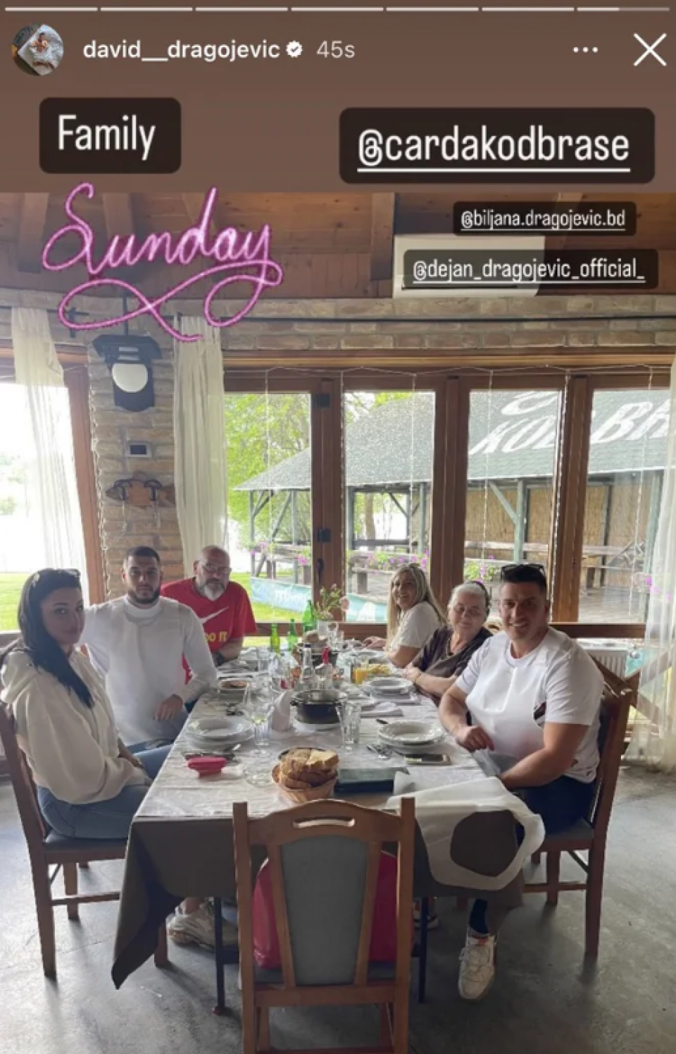 Naime, Dragojevići su se porodično okupili, kako bi zajedno ručali i proslavili bakin rođendan. Dejan je više puta napominjao tokom učešća u najgledanijem rijalitiju u regionu da najviše voli porodični ručak nedjeljom i da mu je to jako nedostajalo, a sad je tu i njegova nova djevojka Jovana.