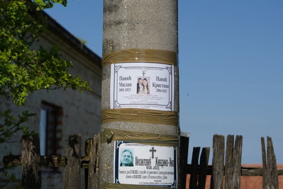 Crkvena zvona jučer su neumorno zvonila u selu koje više nikad neće biti isto. Danas su ulice puste. Umrlica na ogradi, stubu, a brat i sestra na njoj zajedno, piše Telegraf.rs.