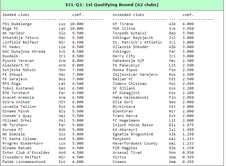 Od navedenih timova koji su nosioci Željezničar neće moći izvući jedino FK Sarajevo, s obzirom da je riječ o klubovima iz iste države.