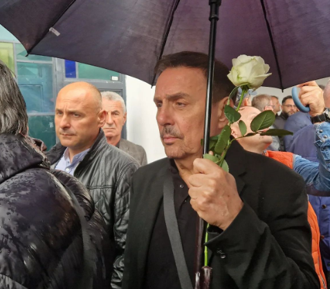 Enesu su prijatelji izjavljivali saučešće i grlili ga, a na njegovom licu se može primetiti bol i tuga za sinom koji je iznenada umro.