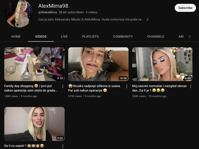 Aleks je još jednom svima dala do znanja da je Dejan za nju večna prošlost i na taj način okončala svačije sumnje. Naime, Nikolićeva je podelila link svog Jutjub kanala, kako bi je što više ljudi zapratilo, a kad se uđe na link može da se vidi da tamo više nema snimaka sa Dejanom i da su svi obrisani.