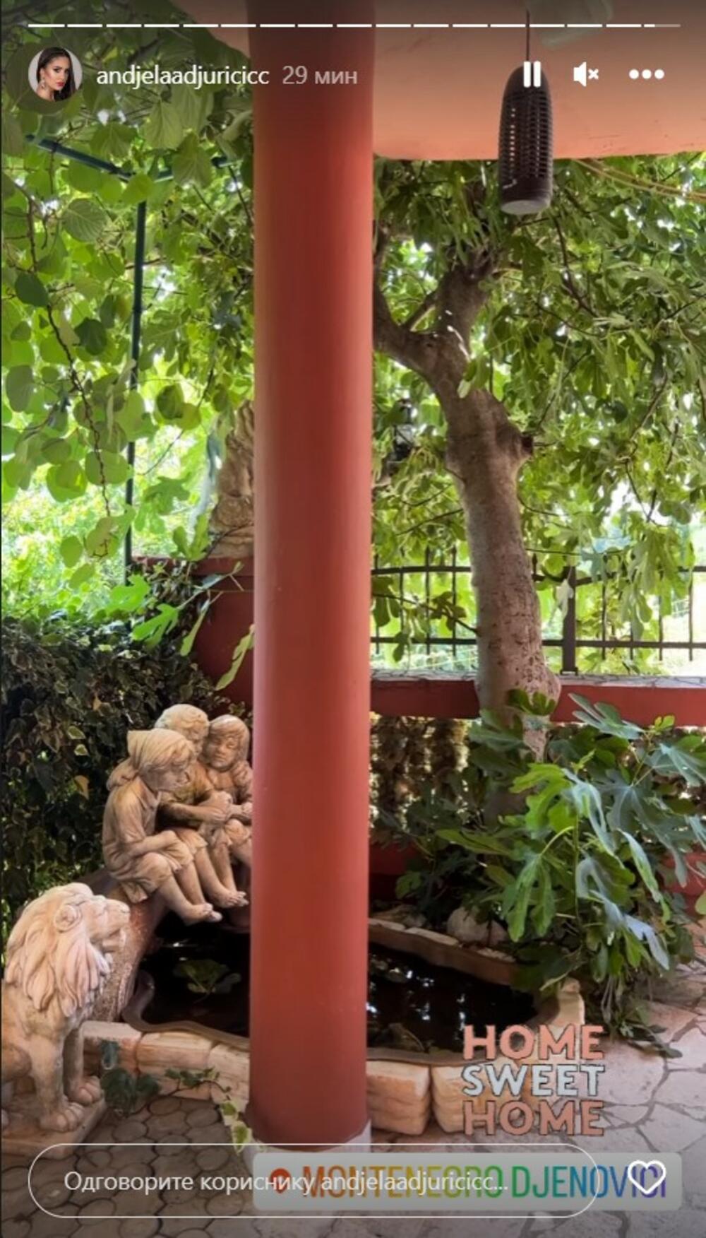 Ona je sada objavila i kratki stori iz dvorišta kuće, u kojem se vidi mala fontana, a sve se nalazi u debelom hladu, a zelenilo oko ograde štiti od pogleda prolaznika.