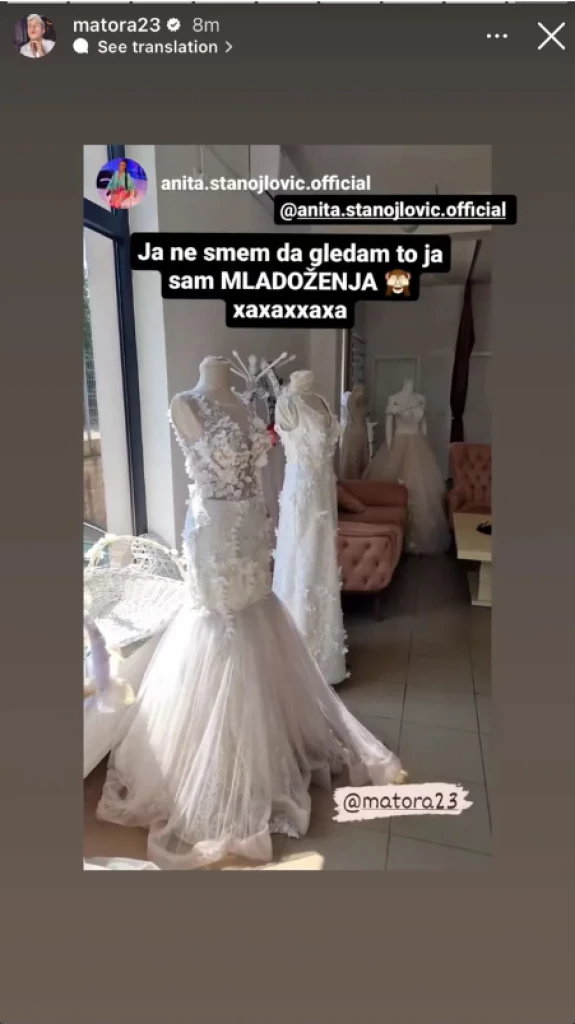 – Ja ne smem da gledam to, ja sam mladoženja, hahaha – napisala je Matora.