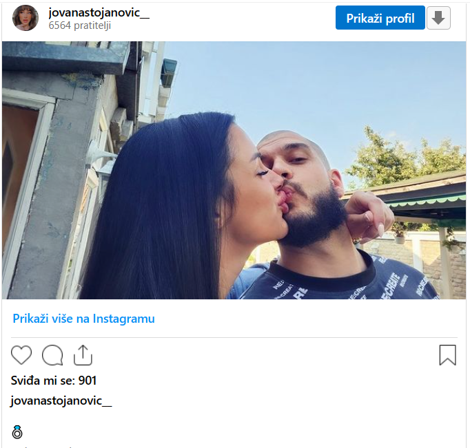 Jovana je, naime, na svom instagramu podelila njihovu zajedničku fotografiju i u opisu stavila emotikon vereničkog prstena.