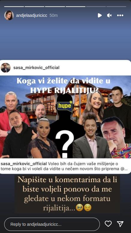 – Napišite u komentarima da li biste voleli da me ponovo gledate u nekom formatu rijalitija – napisala je Đuričićeva.
