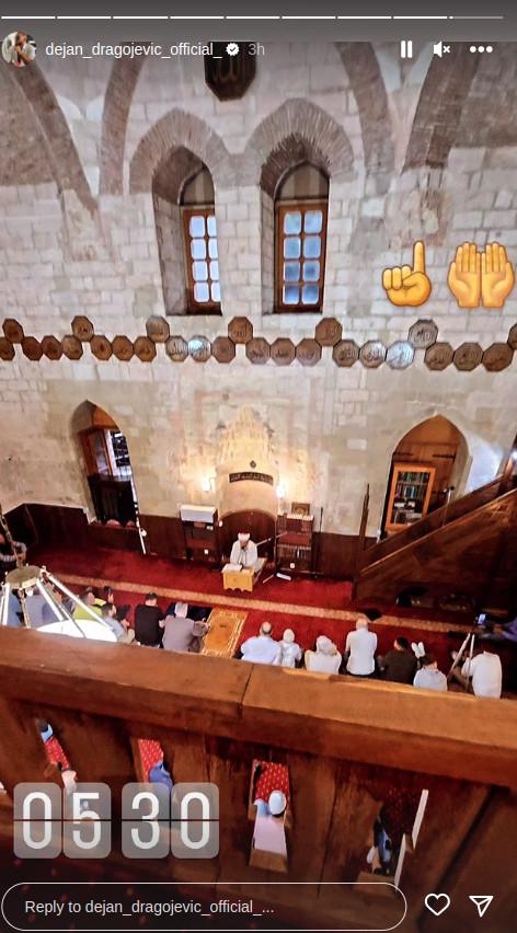 Dejan se oglasio iz džamije, objavivši fotografiju na svom Instagram profilu u zoru, gde se jasno vide vjernici koji klanjaju ovog jutra: