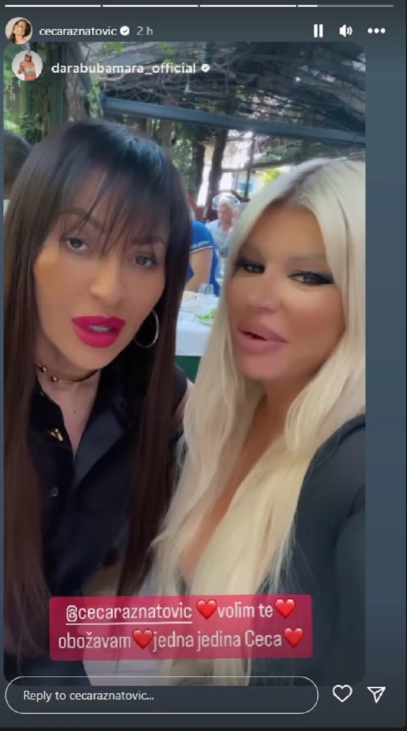 Ceca Ražnatović druži se sa brojnim kolegama sa estrade, ali jedna sa kojom je najbliskija jeste Dara Bubamara.