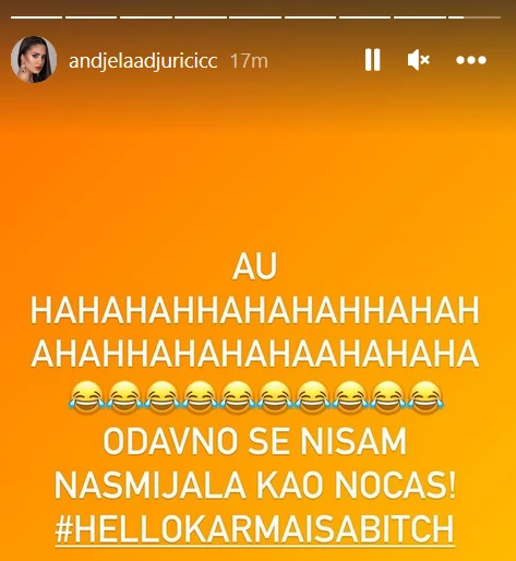 Au, odavno se nisam nasmejala kao noćas. Zdravo, karma je kuč…!