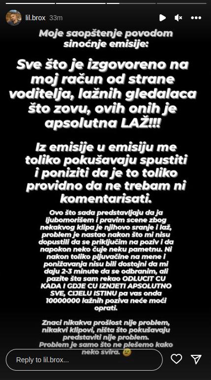 Sada se Brajlović oglasio putem svog Instagram profila i razjasnio sve nedoumice koje su se ticale ove teme i to u prilično podugačkom saopštenju.