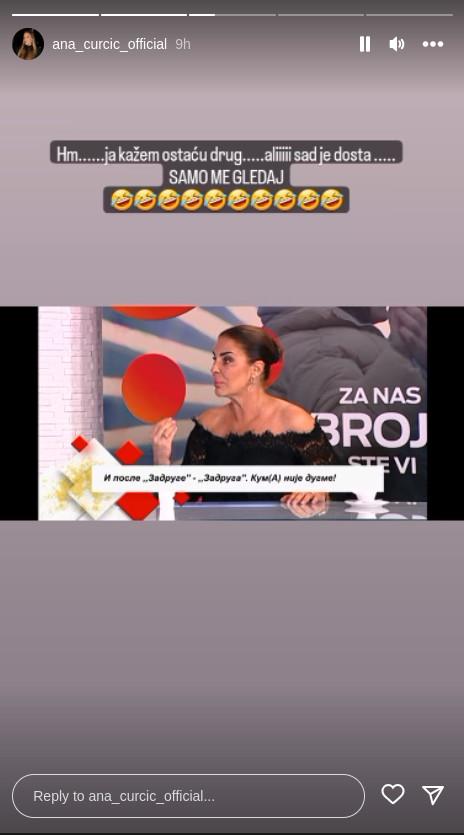 Ja kažem ostaću drug, ali sad je dosta. Samo me gledaj – napisala je Ana u opisu videa.