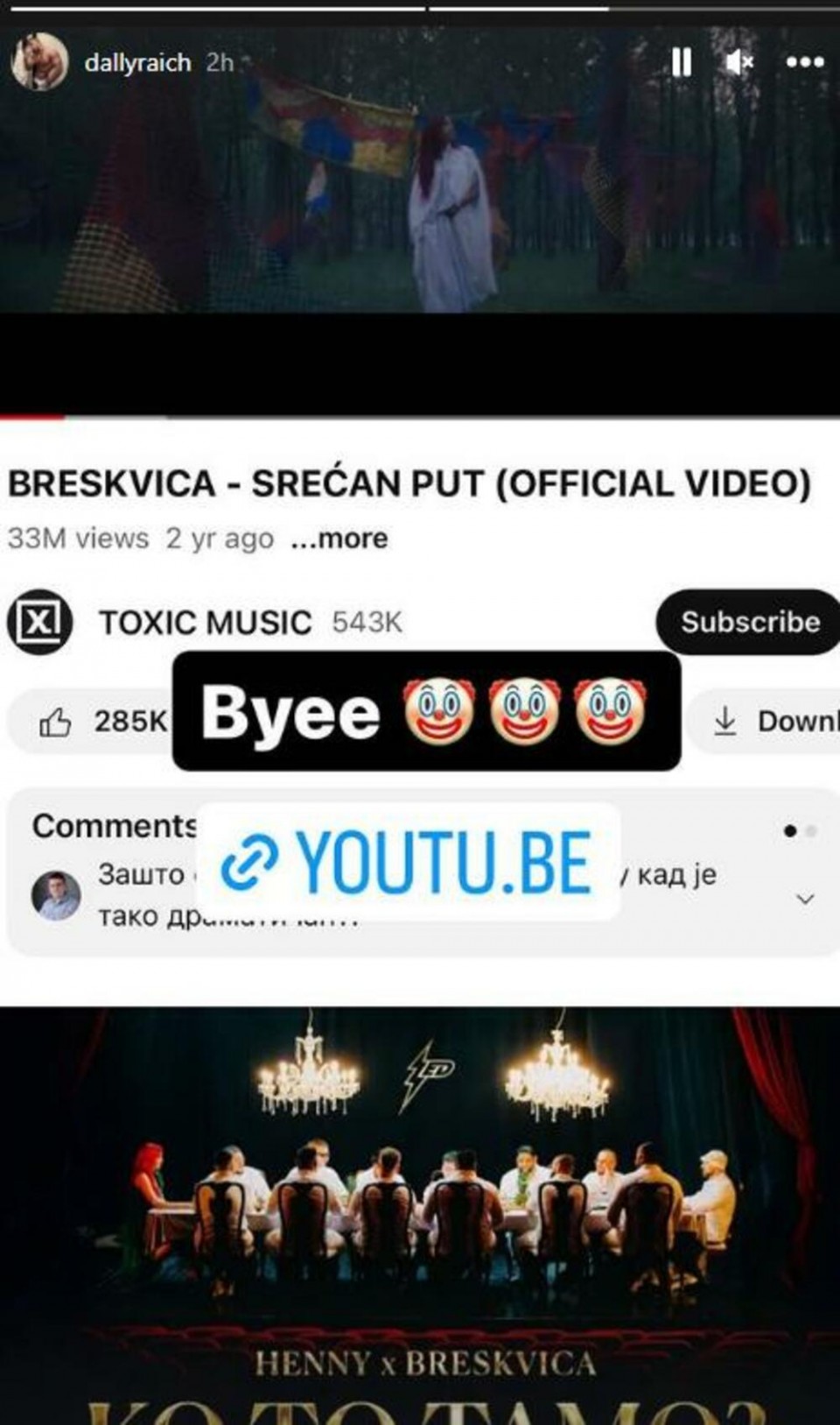 Naime, na Instagram profilu Daniel je objavio pjesmu od Breskvica ,,Srećan put”, te je napisao na engleskom jeziku ,,Ćao” i stavio emotikon klovna, a nedavno su svi pričali o njenoj svekrvi.