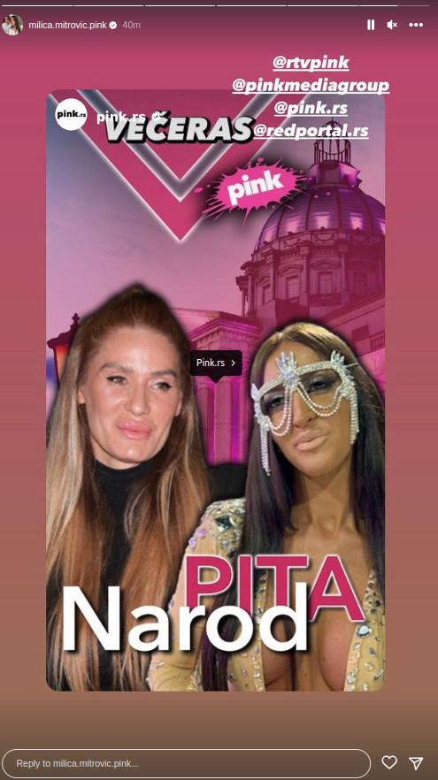 Direktorka televizije Pink, Milica Mitrović, oglasila se povodom večerašnje emisije “Narod pita”.