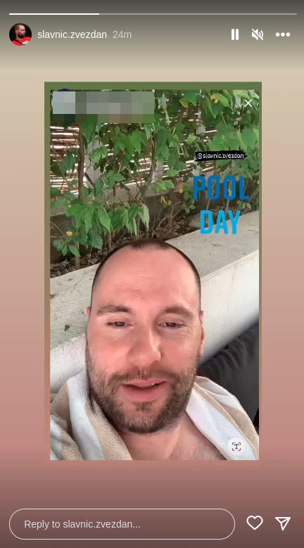 Ambijent bazena je veoma lep a iza se nalaze biljke i trska. Očigledno je da je Zvezdanu prijalo da izađe iz kuće.