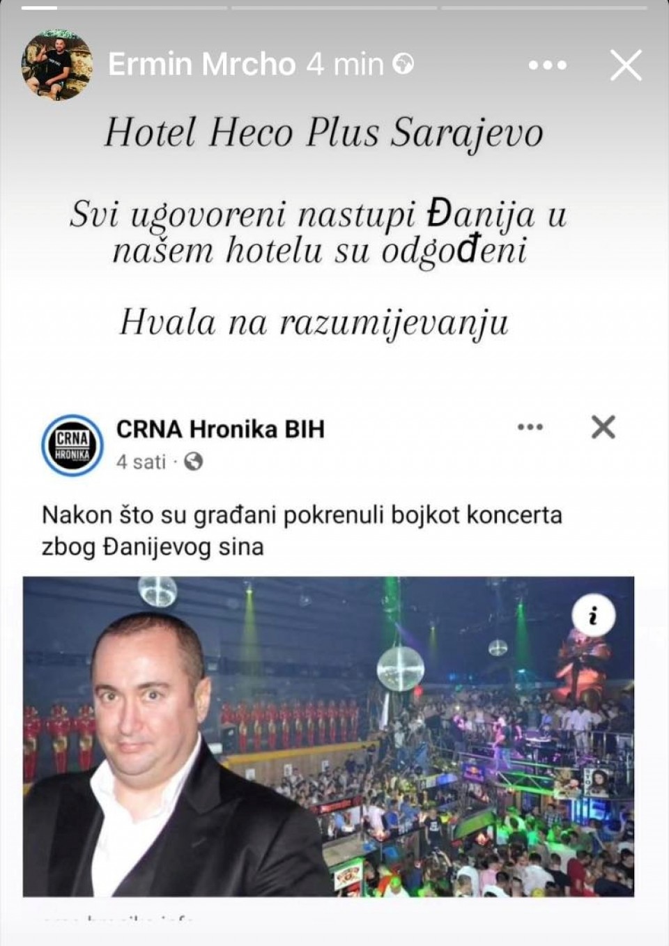 Bojkot zbog objave o Srebrenici: Svi Đanijevi nastupi u sarajevskom klubu su odgođeni!